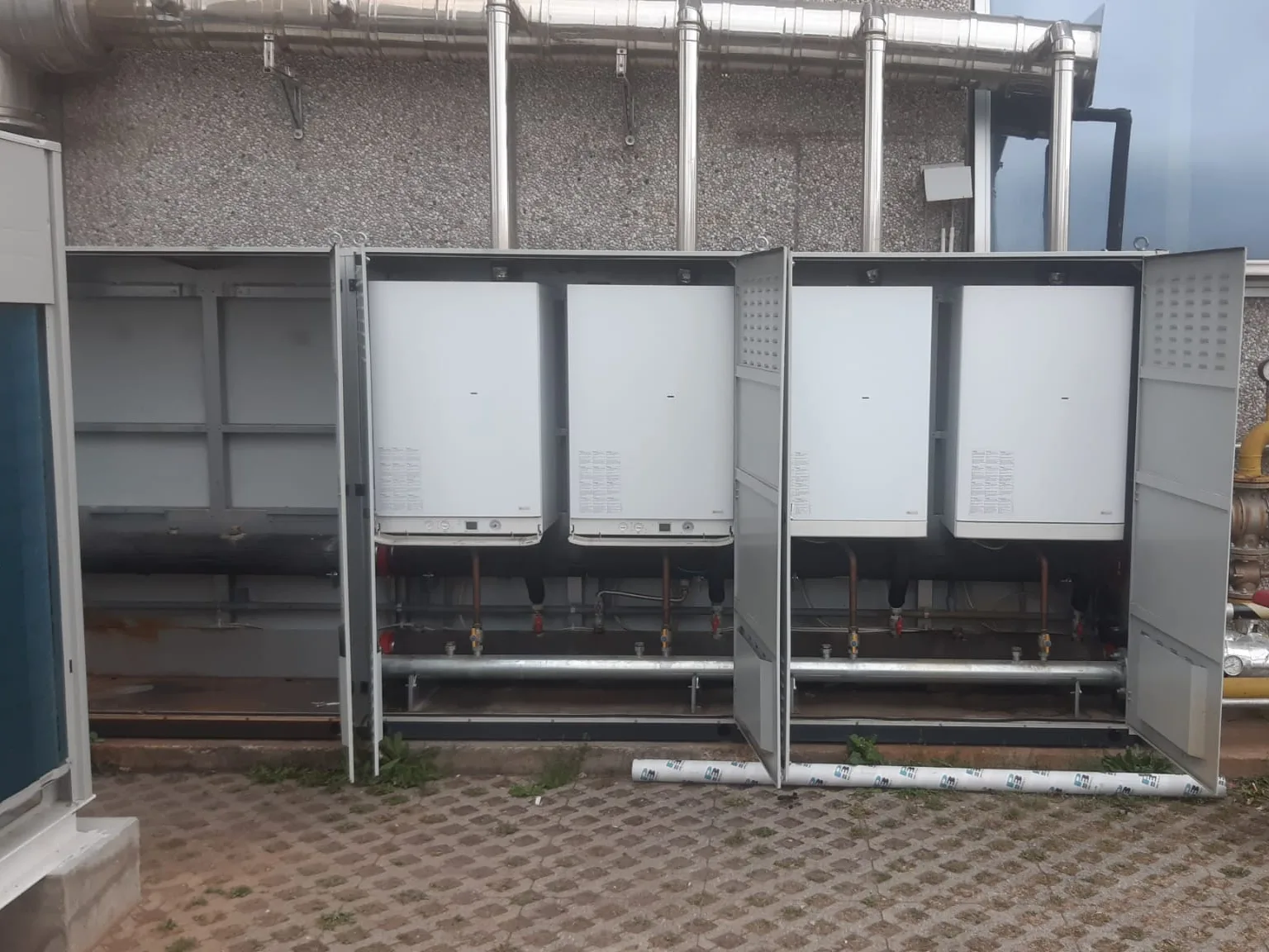 Nr 6 caldaie in parallelo per potenza totale di 560 kw circa in riscaldamento.