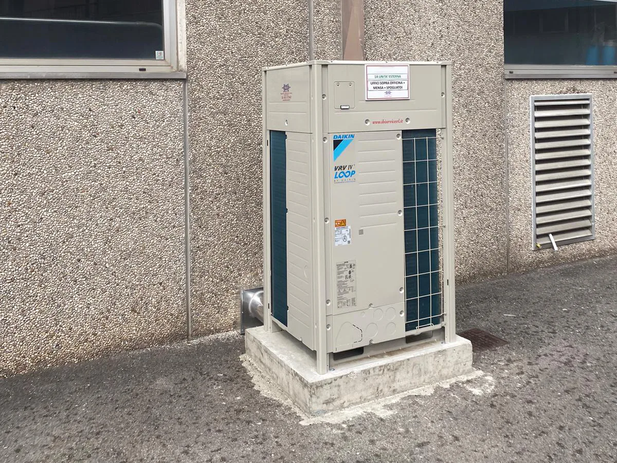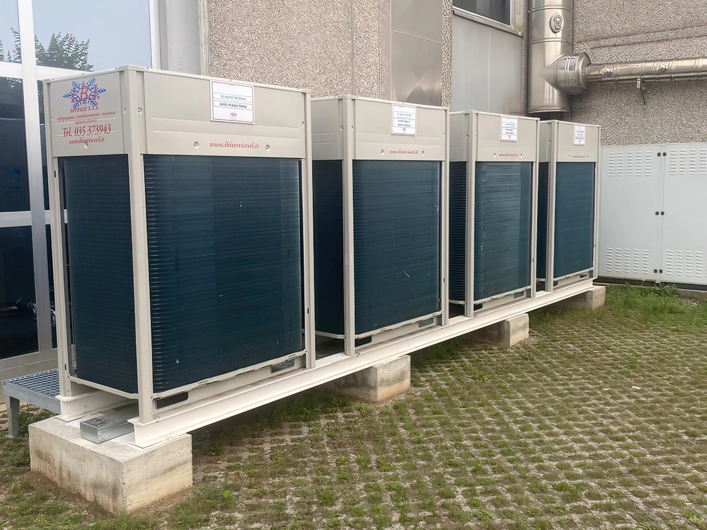 Nr 3 vrv in pompa di calore in parallelo per potenza totale di 150 kW circa.